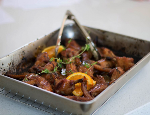 A yummy savoury treat the kids will love. 1kg of chicken wings & drumsticks 1 juice and zest of a large orange 2 spring onions finely sliced 1tbsp good quality honey (raw if possible) 2tbsp low sodium organic soy sauce ½ tsp cinnamon Sprigs…