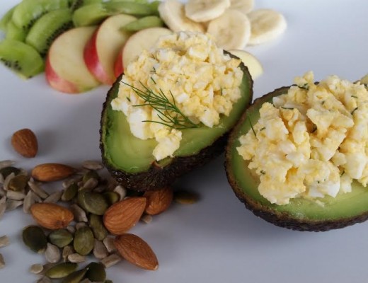 Avocado & Egg 1 avocado halved and pip removed 1 boiled egg per half avocado pink or sea salt and freshly ground pepper to taste 1-2 tsp fresh dill finely chopped a selection of sunflower and pumpkin seeds and some almonds seasonal fruit of…