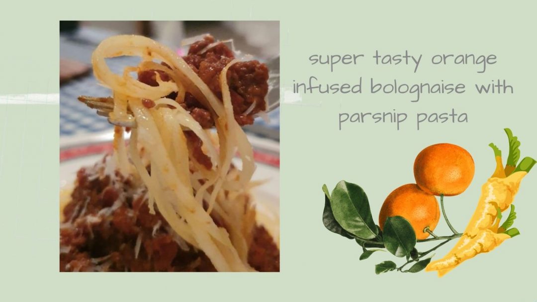 To cook the parsnip pasta, heat a pot of water to a gentle boil, put the parsnip pasta into the sieve and hold over the boiling water, very gently move the pasta around. You only want to soften it so it is al-dente, not soft so it falls apart. It won’t take long.