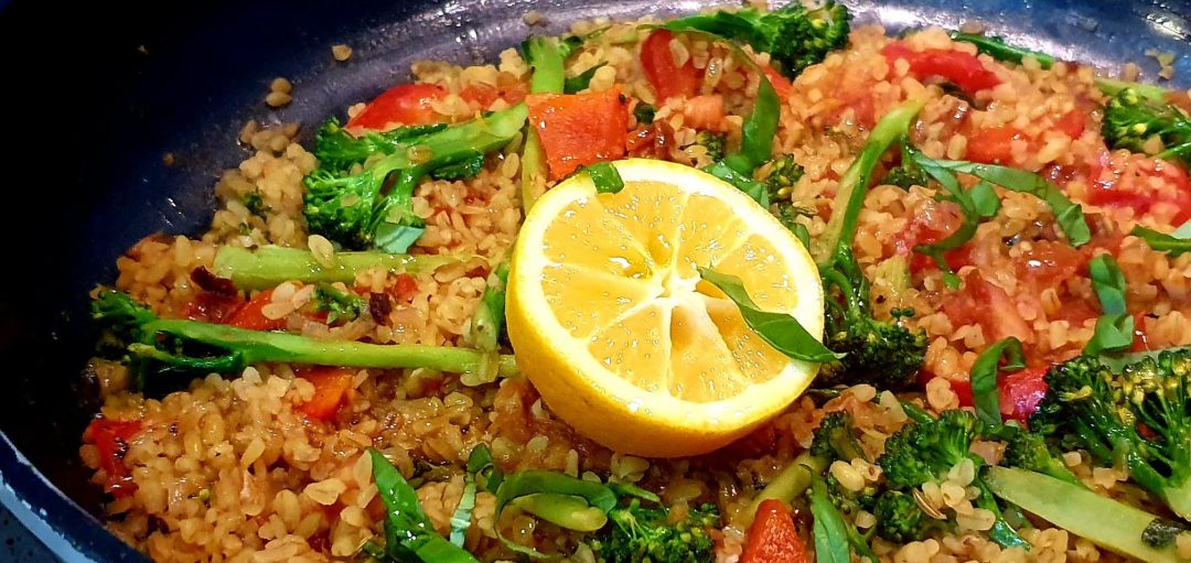 At this stage turn the heat on under the bulgur just a low to medium heat.